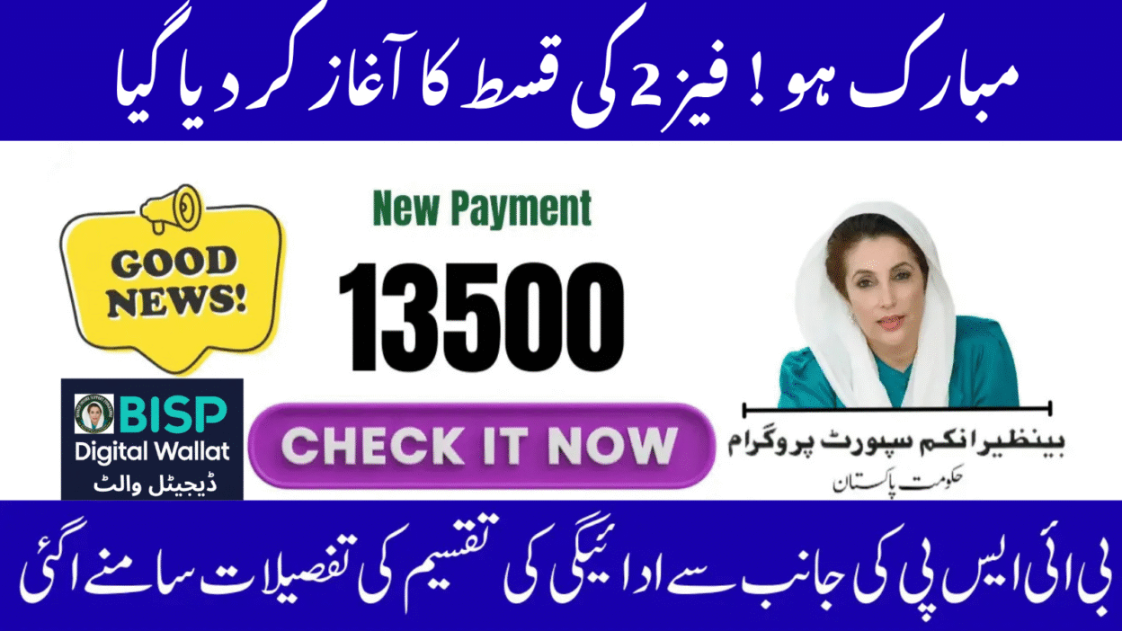 According to latest updates shared by the Benazir Income Support Programme (BISP), the Rs. 13500 Phase 2 installment is now being started gradually across selected districts. The official 8171 web portal and BISP helpline (0800-26477) are the only reliable sources to confirm 13500 payment schedules and eligibility. Avoid trusting unauthorized social media posts or fake messages. Beneficiaries are advised to check their CNIC status through SMS to 8171 or visit nearby BISP Tehsil offices for real information about Phase 2 payments.