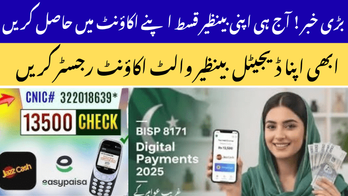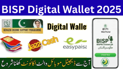The BISP Digital Wallet Account Activation 2025 allows beneficiaries to securely receive BISP 13500 payments directly into mobile wallets like JazzCash, Easypaisa, or HBL Konnect through verified CNIC and 8171 registration.